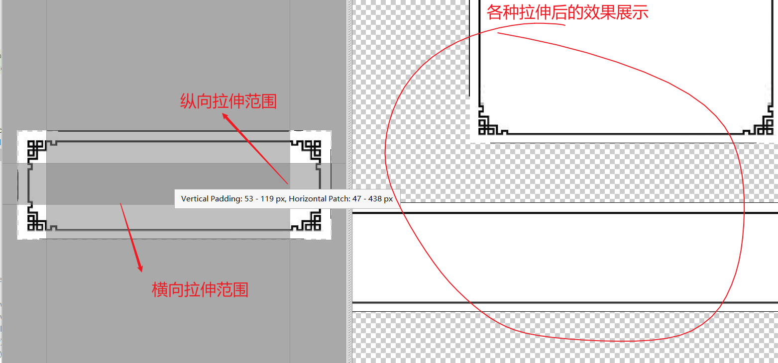上面那一部分是原始效果,下面那一部分是使用.9图的效果。