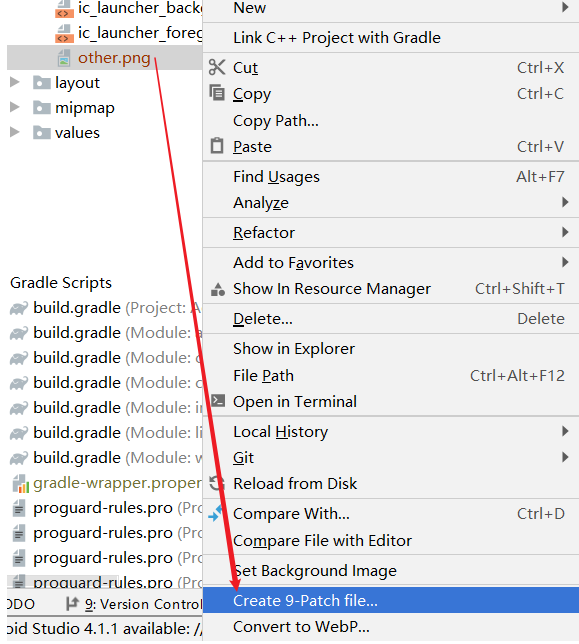 选择Create 9-Patch file…选项之后,会弹出选择保存位置的对话框,可以自己选择修改位置,一般都直接选择OK即可,然后打开这个.9图: