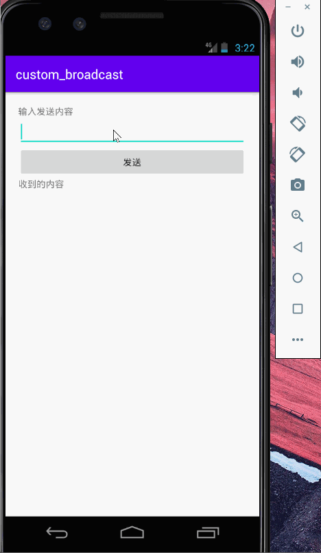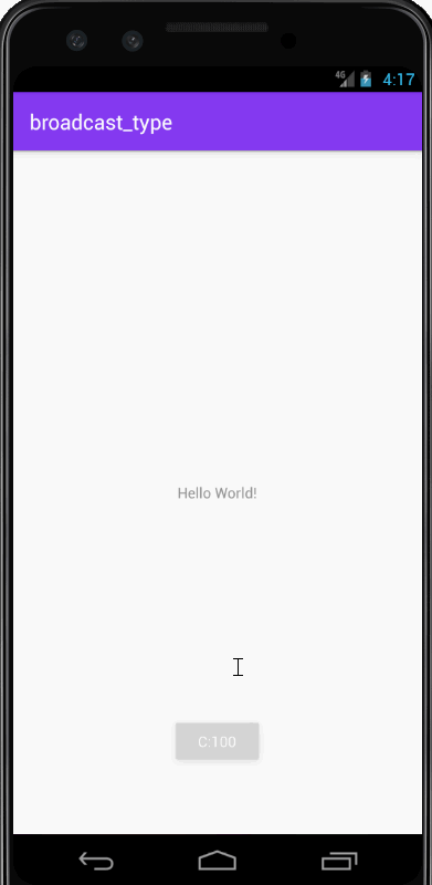 AppReceiver.java还是和上面的一样,但是现在不在AndroidManifest.xml中声明,而是使用动态注册的方式,下面的例子演示了如何在Activity创建的动态的注册广播接收者: