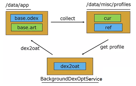 2、当设备闲置和充电时,编译守护进程会运行,根据 Profile 文件对常用代码进行 AOT 编译。待下次运行时直接使用编译好的机器码。