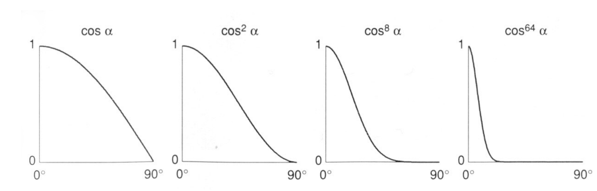 在强度相同的光照下,与光线方向垂直的多边形面会被照得更亮。我们通过冯氏光照模型很容易得出这样的结论 :当多边形与光线平行时,接收的光照是 0。其实照明强度等于光向量与给定三角形法线向量的点积,三角形的法线,可以通过三角形两条边做叉积得到。
