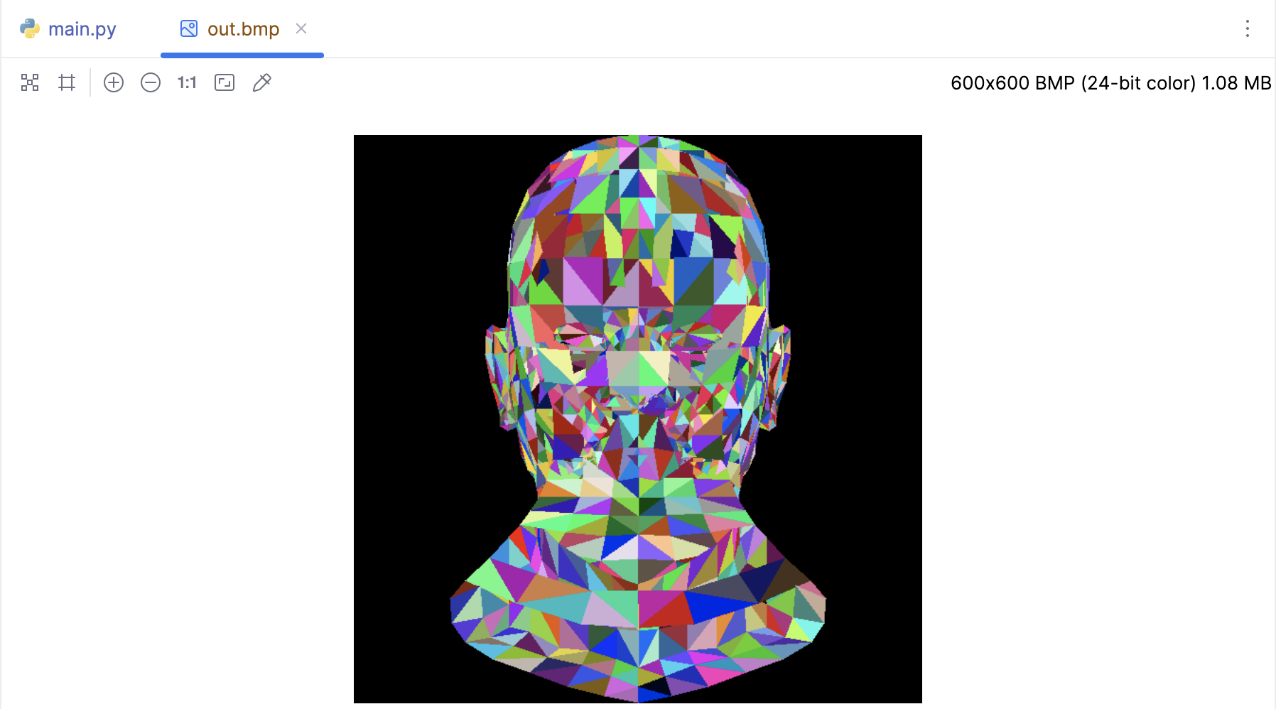 我们已经知道如何用空三角形绘制模型。 让我们用随机颜色填充它们。下面的代码有助于我们看到代码是如何填充三角形的:
