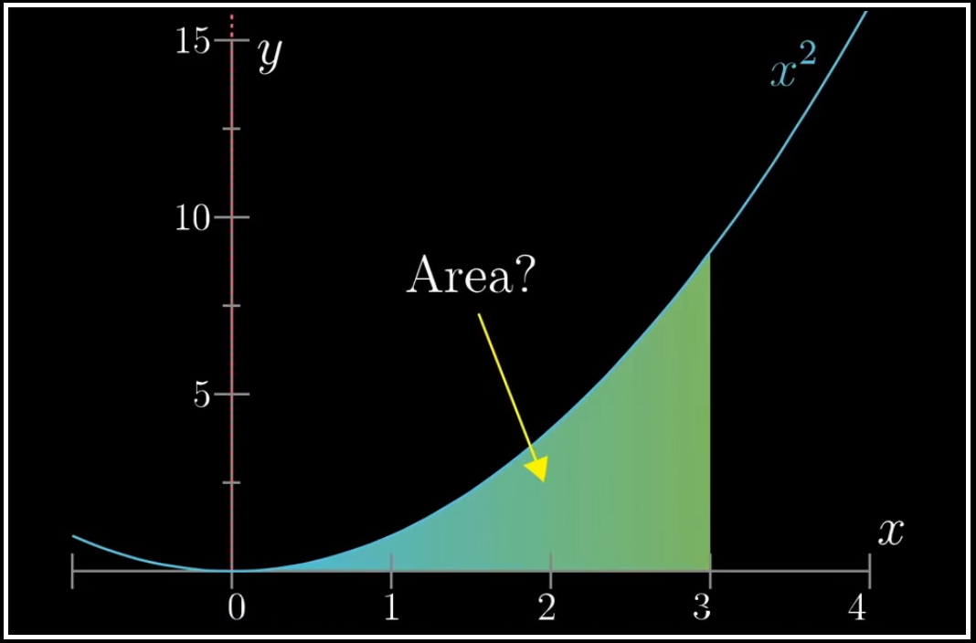这只是圆形面积采用积分的方法得出的证明,因为恰好所有的类矩形的高度都落在了 $2\pi r$ 的函数上面,积分范围只是从$0 - r$,圆的面积就是那个三角形的面积,甚至于我们可以看成是一个巧合,那么对于其他函数如何求出那条函数曲线下的面积呢?比如 $y = x^2 $ 的函数曲线: