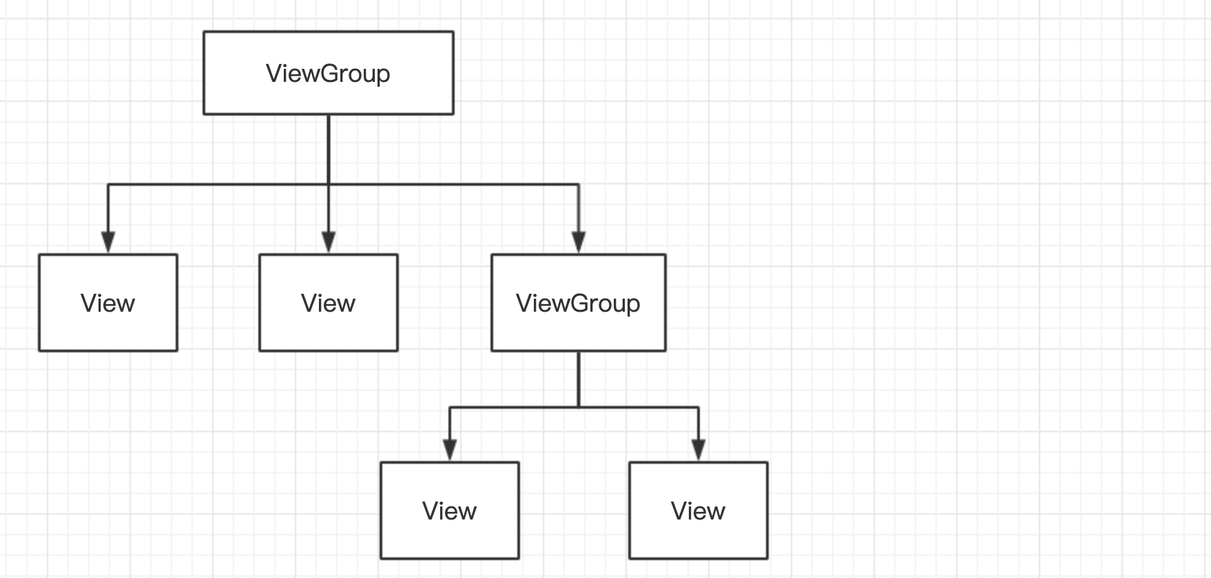 对于多View的视图,结构是树形结构:最顶层是ViewGroup,ViewGroup下可能有多个ViewGroup或View,如下图: