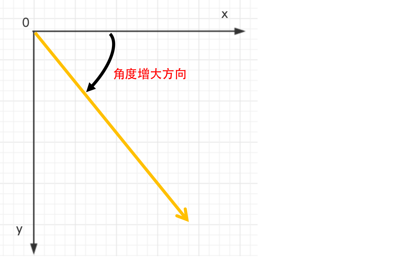 。在常见的数学坐标系中角度增大方向为逆时针,但是在Android中角度增大的方向是顺时针: