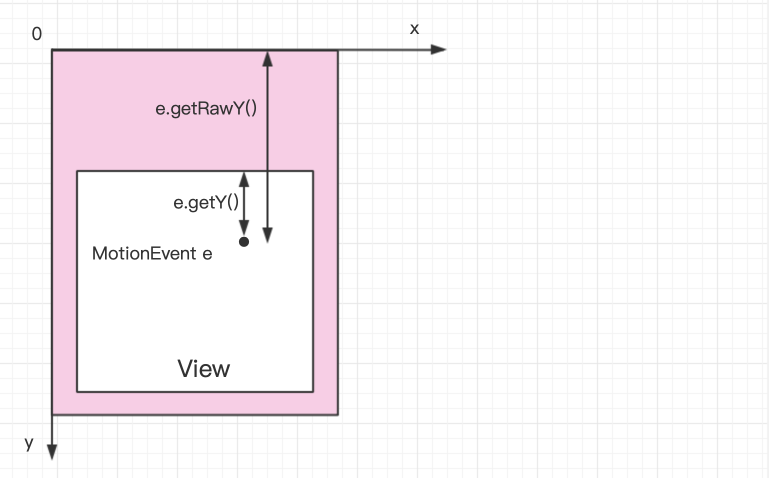 Android的坐标系定义为:屏幕的左上角为坐标原点,向右为x轴增大方向,向下为y轴增大方向,具体如下图: