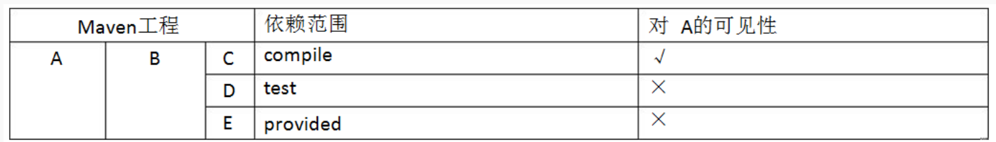 A依赖B,B依赖C,A能否使用C呢?那要看B依赖C的范围是不是compile,如果是则可用,否则不可用。