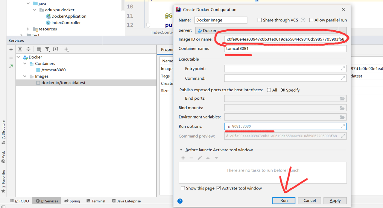 然后通过IDEA操作Docker去生成容器即可