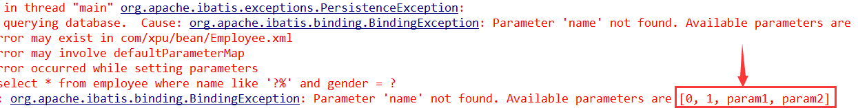 其实对于这种多参数的情况,应该这样写Employee.xml,这叫做顺序传参法: