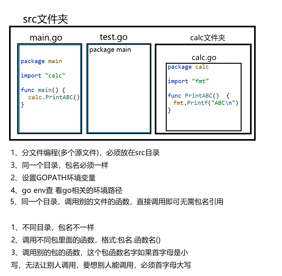 1、配置GOPATH环境变量, 配置src同级目录的绝对路径 2、自动生成bin或pkg目录,需要使用go install命令。除了要配置GOPATH环境变量,还要配置G0BIN环境变量工 src:放源代码 bin:放可执行程序 pkg:放平台相关的库