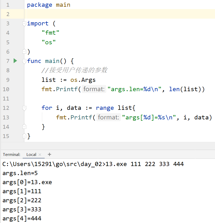 fmt.Printf("内部:a=%d, s=%s\n", a, s)