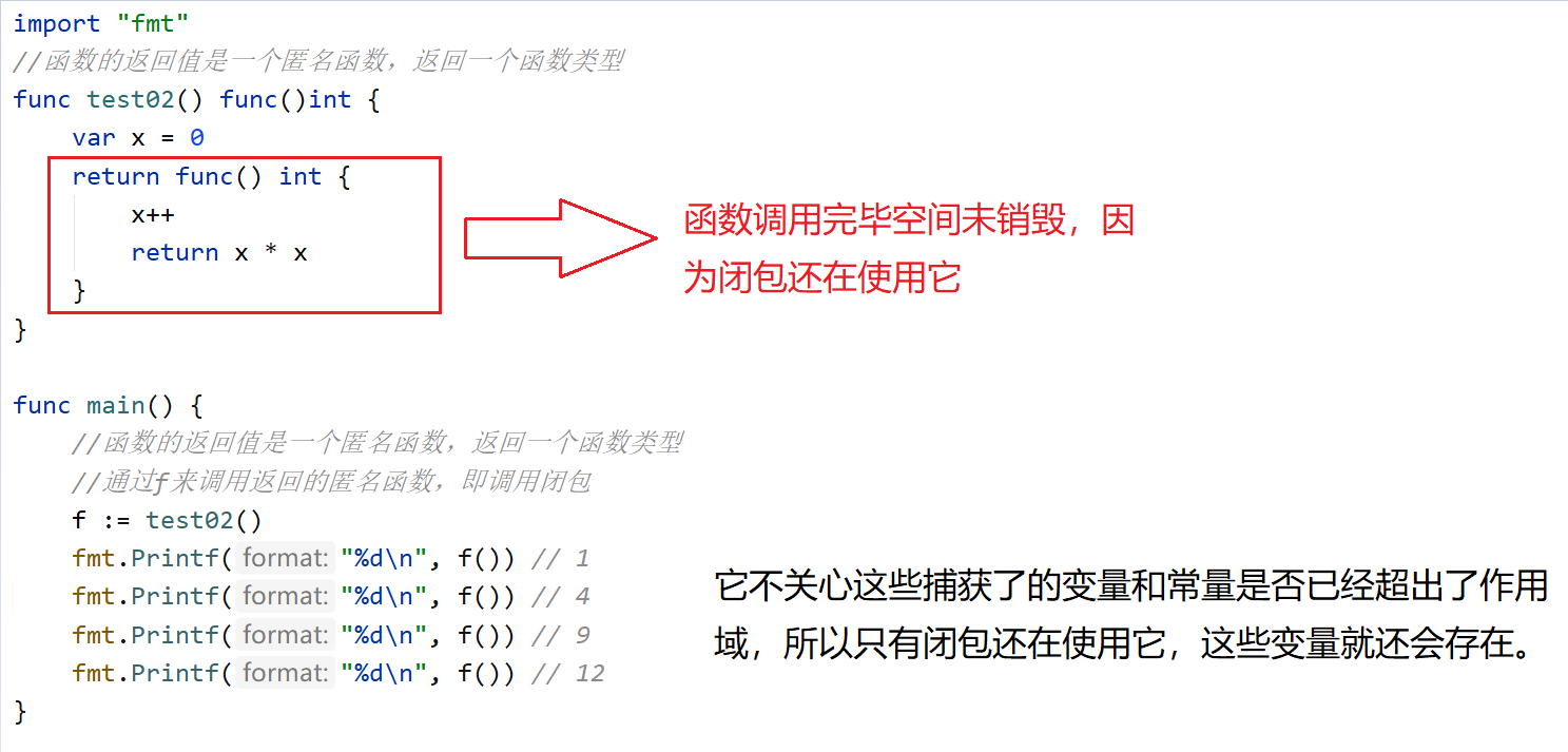所谓闭包就是一个函数“捕获”了和它在同一作用域的其它常量和变量。这就意味着当闭包被调用的时候,不管在程序什么地方调用,闭包能够使用这些常量或者变量。它不关心这些捕获了的变量和常量是否已经超出了作用域,所以只有闭包还在使用它,这些变量就还会存在。
