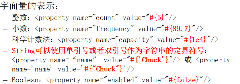 语法类似于 EL:SpEL 使用 #{…} 作为定界符,所有在大框号中的字符都将被认为是 SpEL