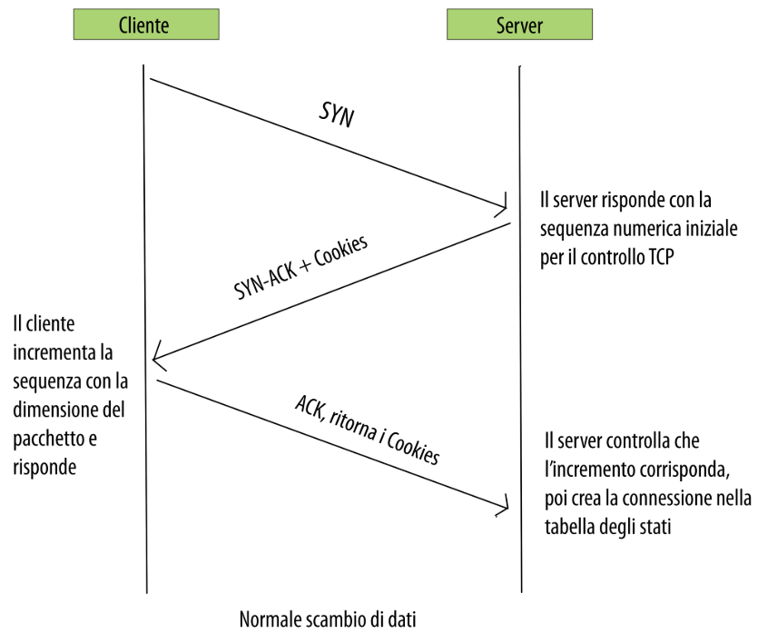 其中一种防护方式是SYN Cookie, SYN Cookies 的应用允许服务器当 SYN 队列被填满时避免丢弃连接。相反,服务器会表现得像 SYN 队列扩大了一样。服务器会返回适当的SYN+ACK响应,但会丢弃 SYN 队列条目。如果服务器接收到客户端随后的ACK响应,服务器能够使用编码在 TCP 序号内的信息重构 SYN 队列条目。