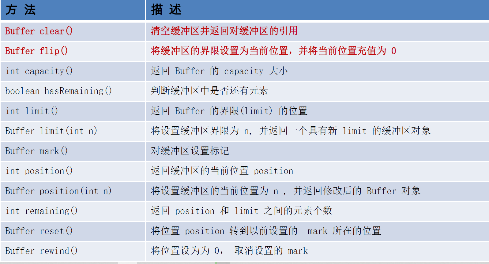 - hasRemaining() 判断缓冲区还有没有可以操作的数据
