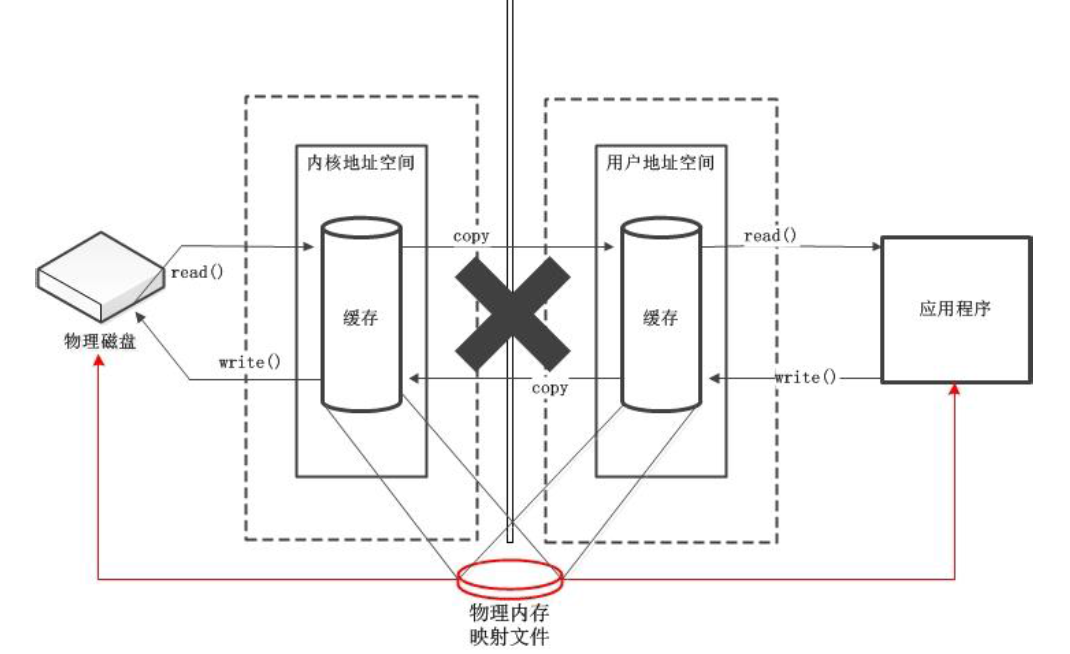 传统IO操作时,JVM在缓存在自己的JVM内存中,自己的JVM内存中的数据需要经过copy到内核缓存中,由操作系统决定何时把数据写入磁盘,但是一旦JVM把数据write到了缓存,操作系统把用户地址空间的缓存数据copy到自己的内核地址空间中,那么JVM时可以随时更改缓存中的数据的,但是程序员也没有操作JVM Gc的能力,这样应用程序IO就变得很低效,要经过copy到内核地址空间这一个步骤