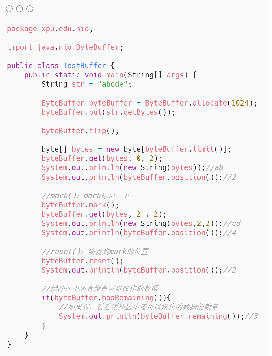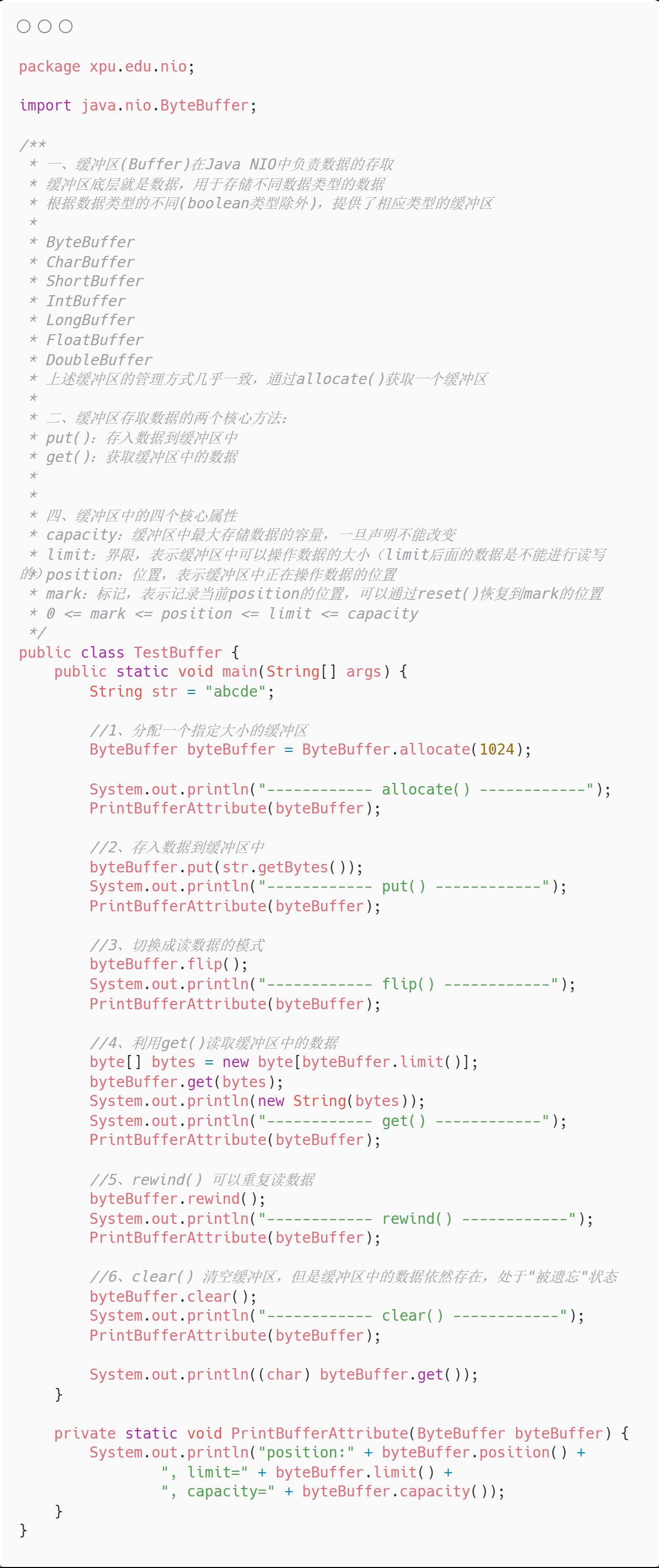 下面是一段关于Buffer的联系代码,以ByteBuffer为例: