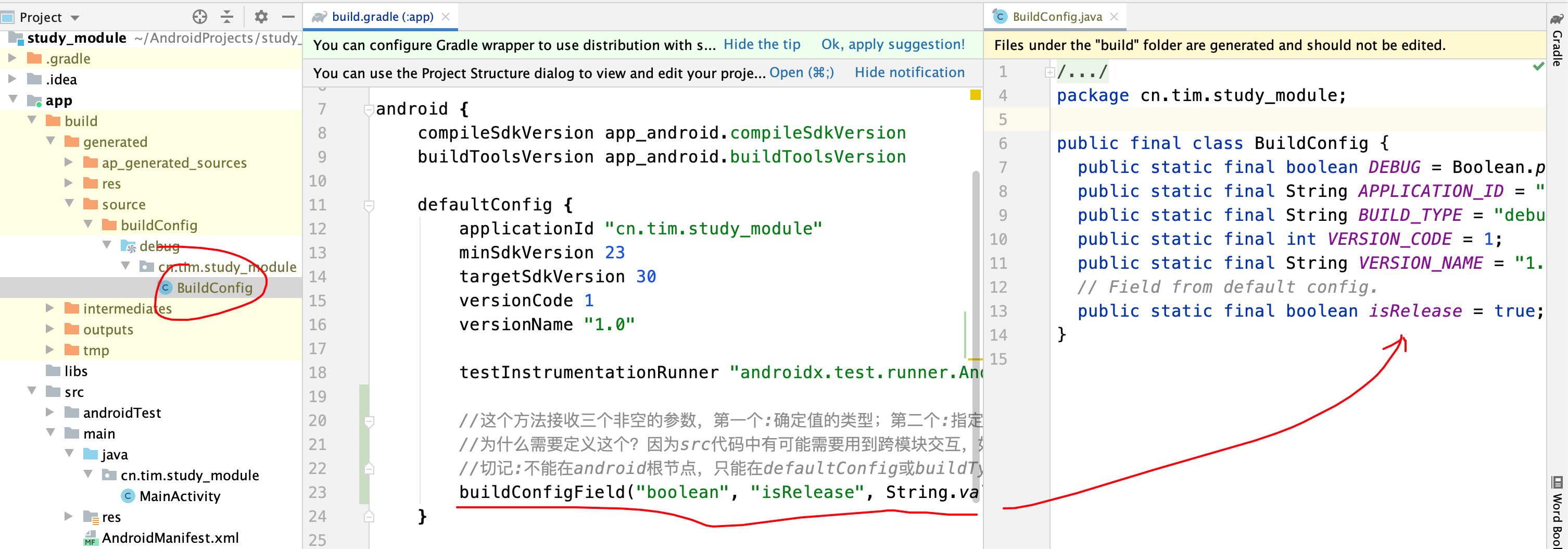另外,如果想在代码中使用自己在app_config.gradle定义的isRelease