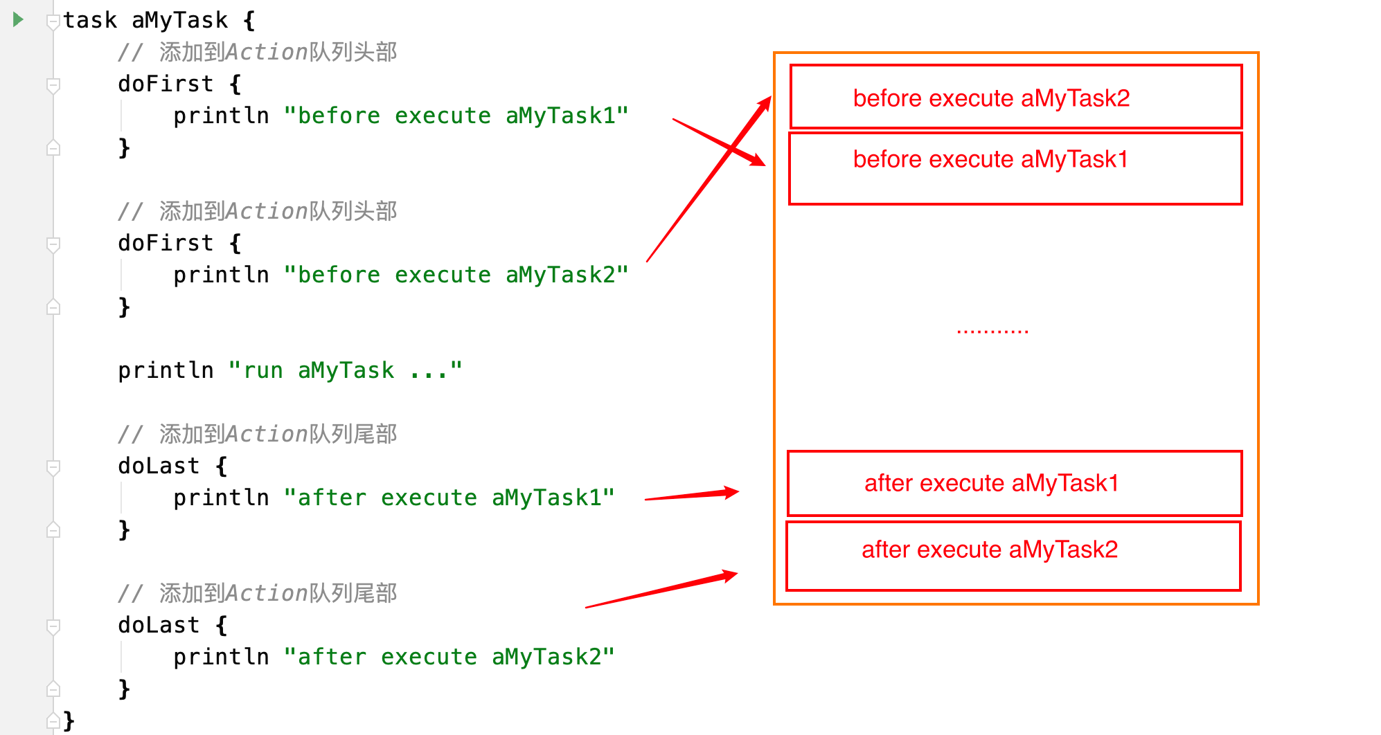 doLast | 给 Task 添加一个任务动作执行结束之后的动作 |