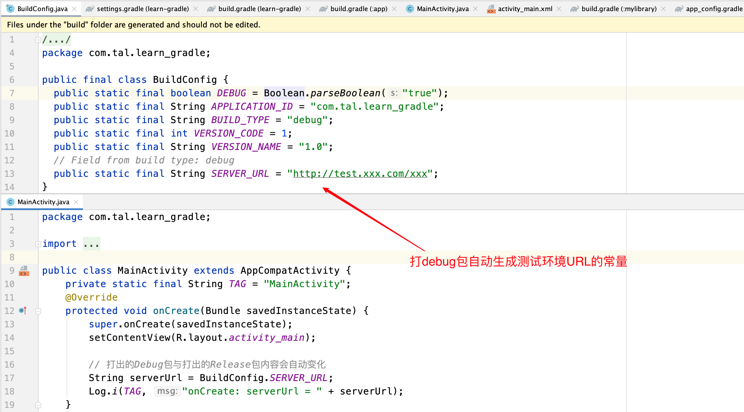 Build一下工程,便会在BuildConfig中自动生成URL常量: