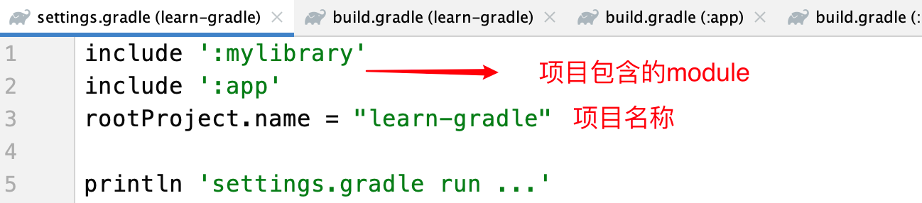 会去读取根工程中setting.gradle中的include信息,决定有哪几个工程加入构建,创建project实例,比如下面有三个工程: