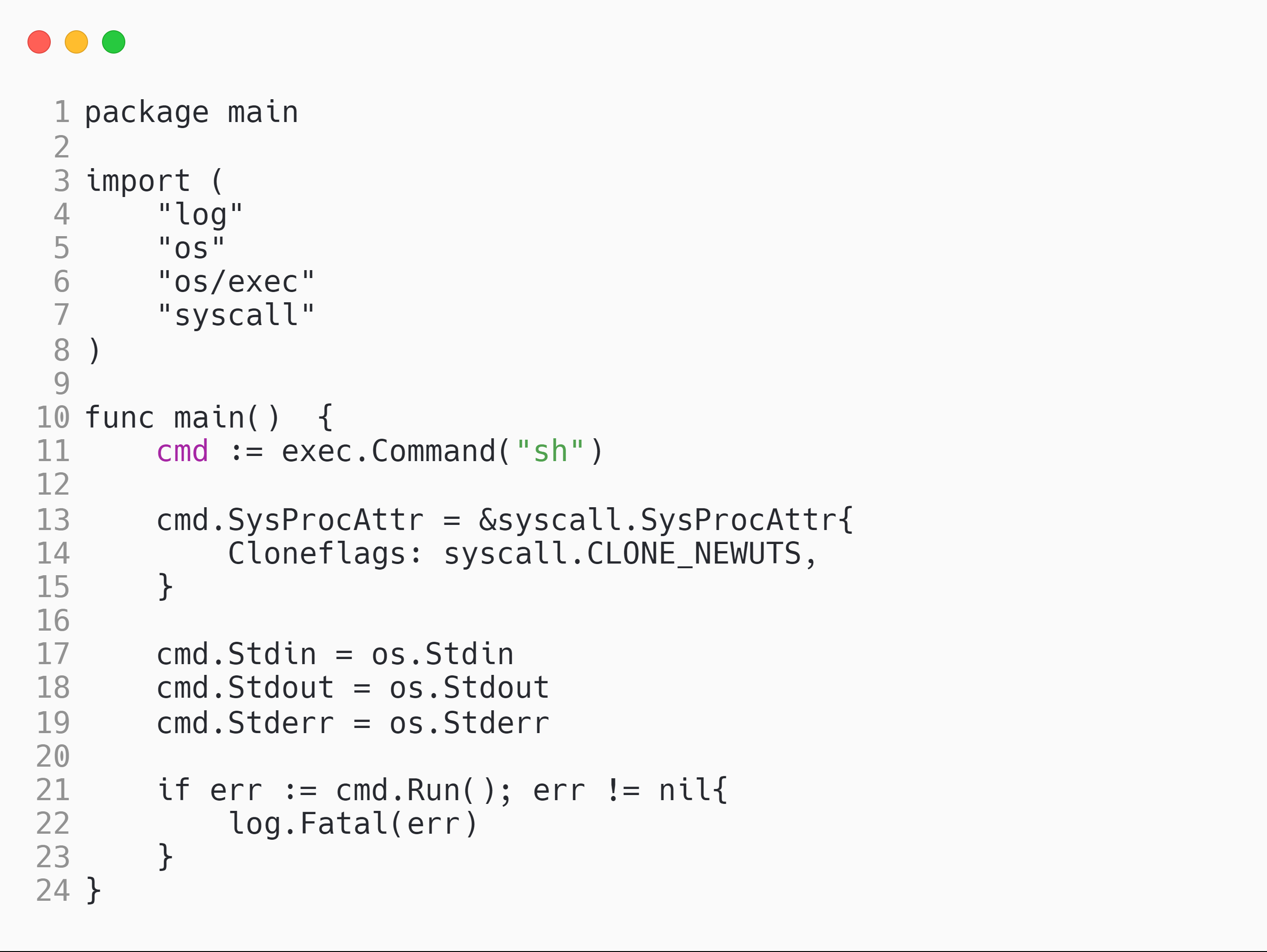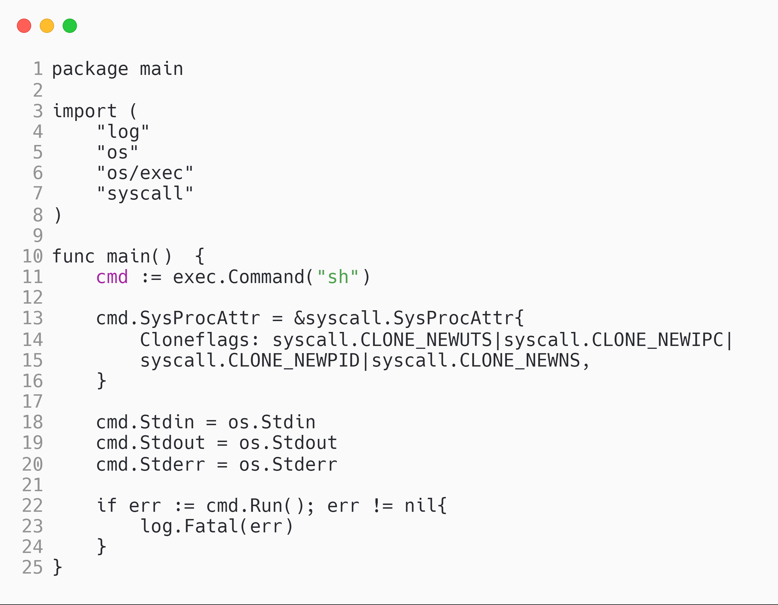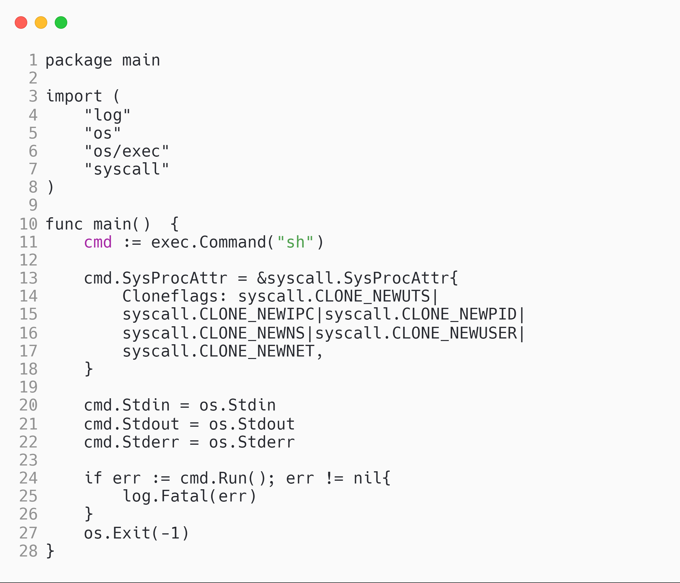 看到这里,也许就会想到chroot()。它也是将某一个子目录变成根节点。但是,MountNamespace不仅能实现这个功能,而且能以更加灵活和安全的方式实现。MountNamespace是Linux第一个实现的Namespace类型,因此,它的系统调用参是NEWNS (New Namespace的缩写)。当时人们貌似没有意识到,以后还会有很多类型Namespace加入Linux大家庭。代码做了一点改动,增加了NEWNS标识,如下。