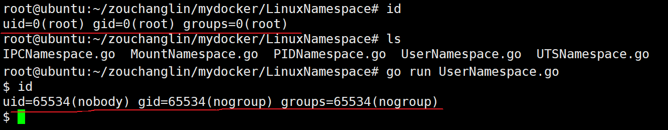 User Namespace主要是隔离用户的用户组ID。也就是说,一个进程的UserID和GroupID在User Namespace内外可以是不同的。比较常用的是,在宿主机上以一个非root用户运行创建一个User Namespace,然后在User Namespace里面却映射成root用户。