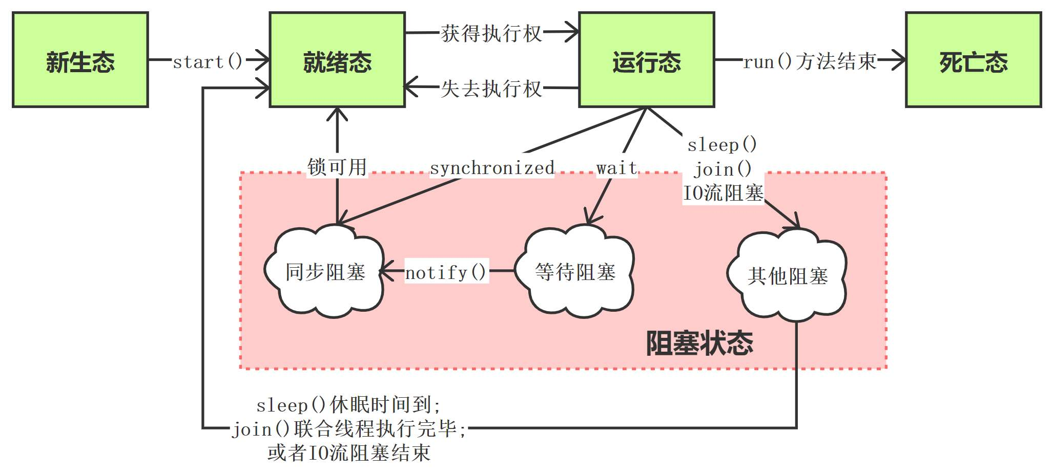 - 线程调用suspend(),将线程挂起(一般不常用,容易造成死锁)