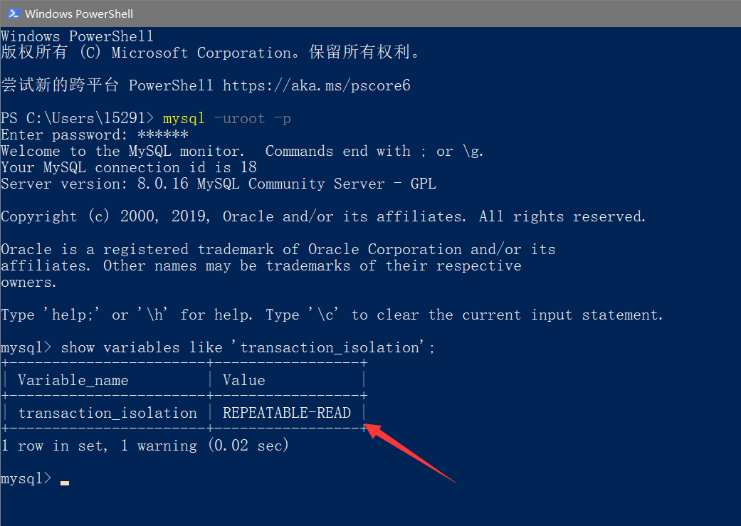 配置的方式是,将启动参数 transaction-isolation 的值设置成 READ-COMMITTED。你可以用 show variables 来查看当前的值: