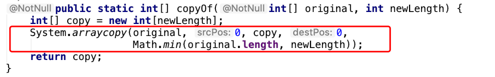 再说说Arrays.copyof()方法,看源代码发现,它还是调用了System.arraycopy()方法: