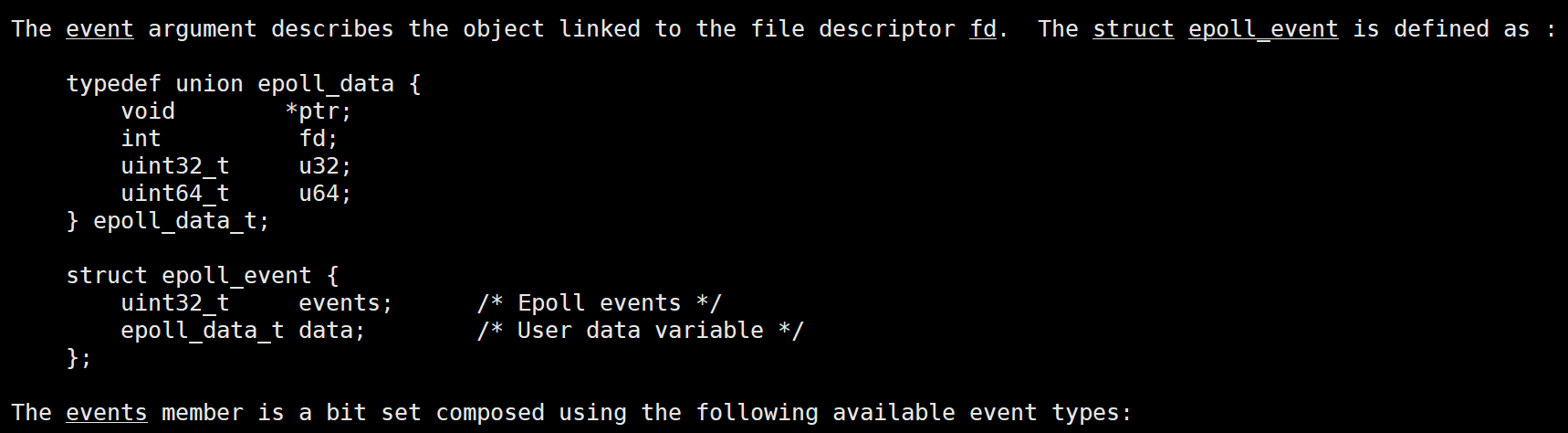 struct epoll_event event; //期待发生的事件类型