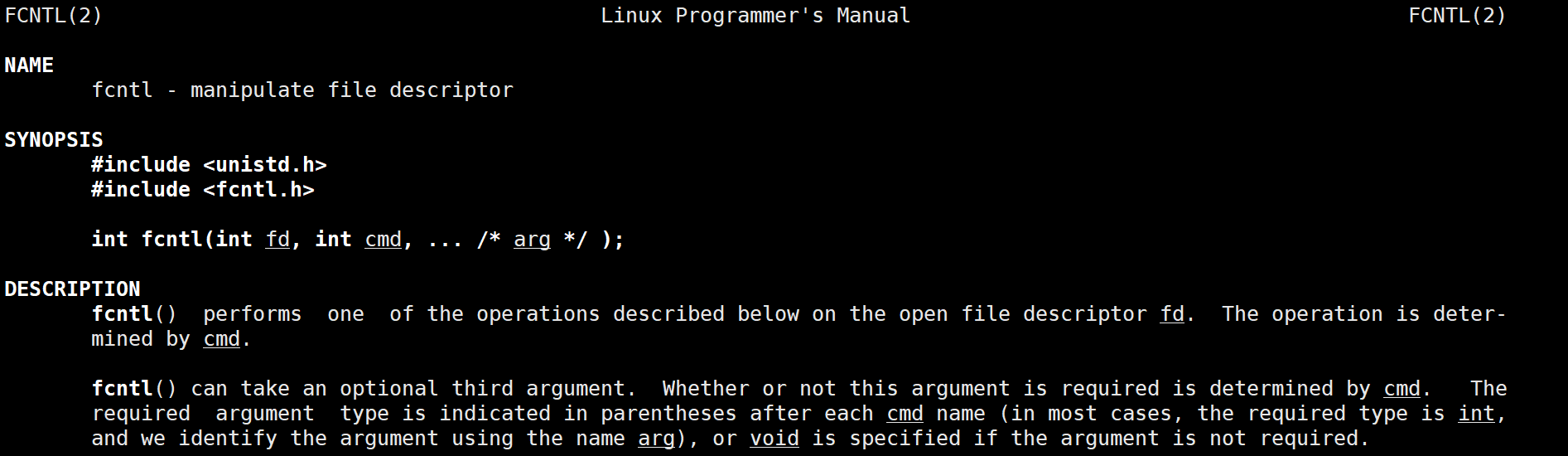 传入的cmd的值不同,后面追加的参数也不相同。fcntl函数有5种功能: