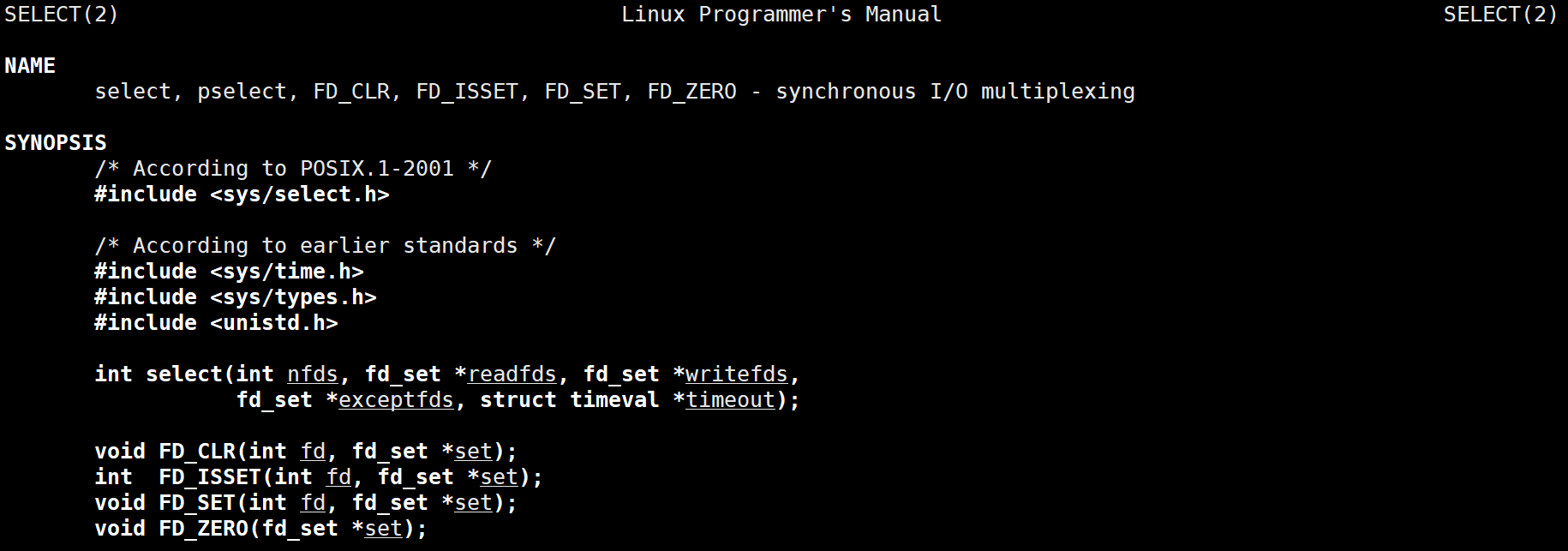- NULL:则表示select()没有timeout,select将一直被阻塞,直到某个文件描述符上发生了事件;