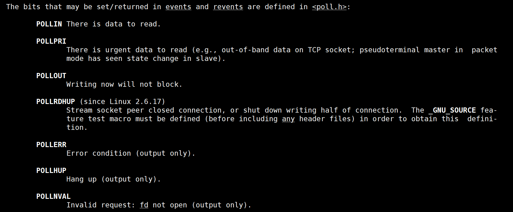 下面是events和revents的取值