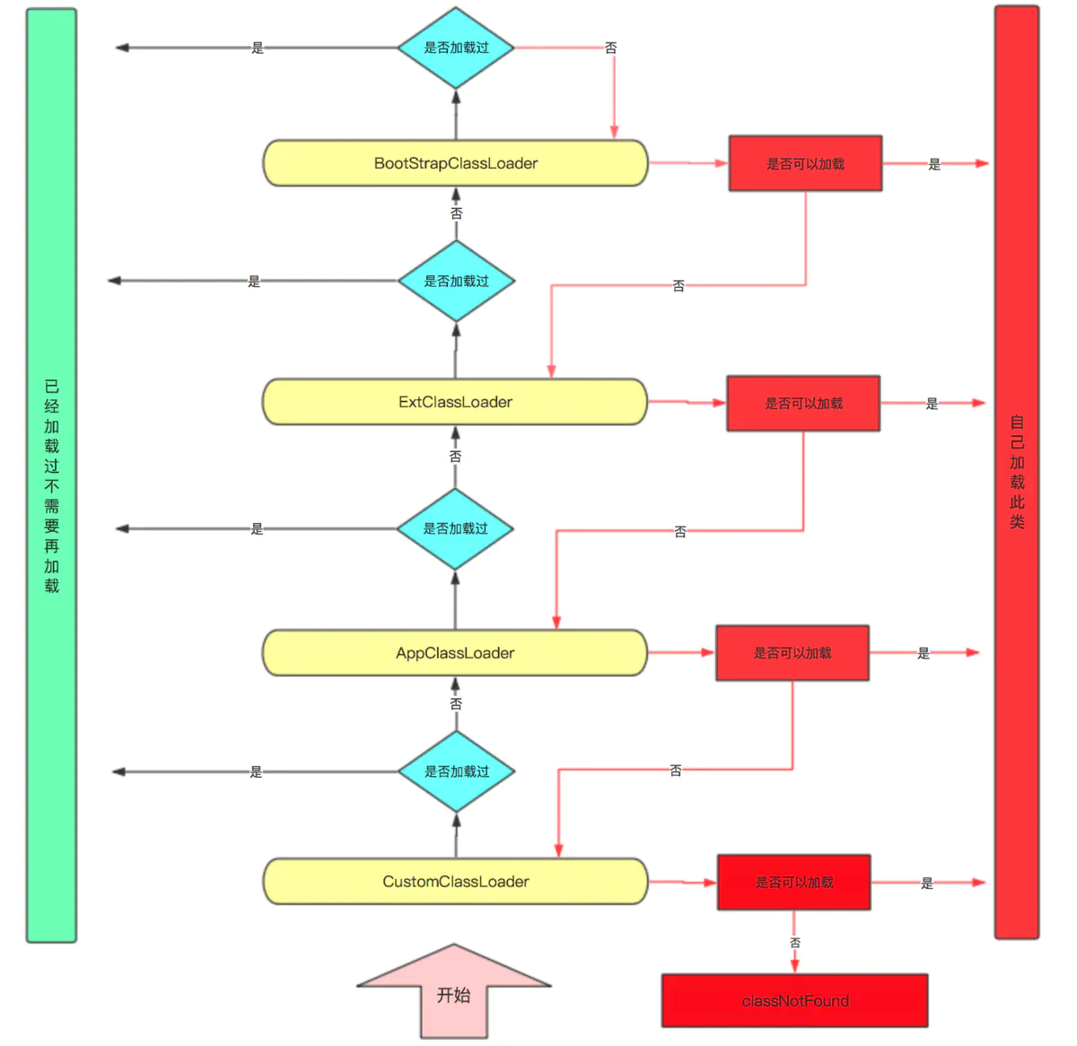 1、类加载器收到类加载的请求,如果已经加载过,则不需要再次加载;