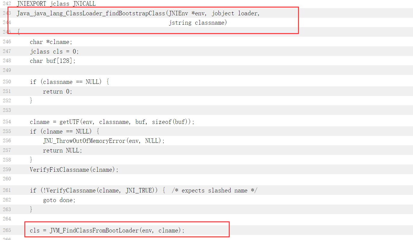 那么这个native方法的实现在哪看呢? http://hg.openjdk.java.net/jdk8u/jdk8u/jdk/file/beb15266ba1a/src/share/native/java/lang/ClassLoader.c