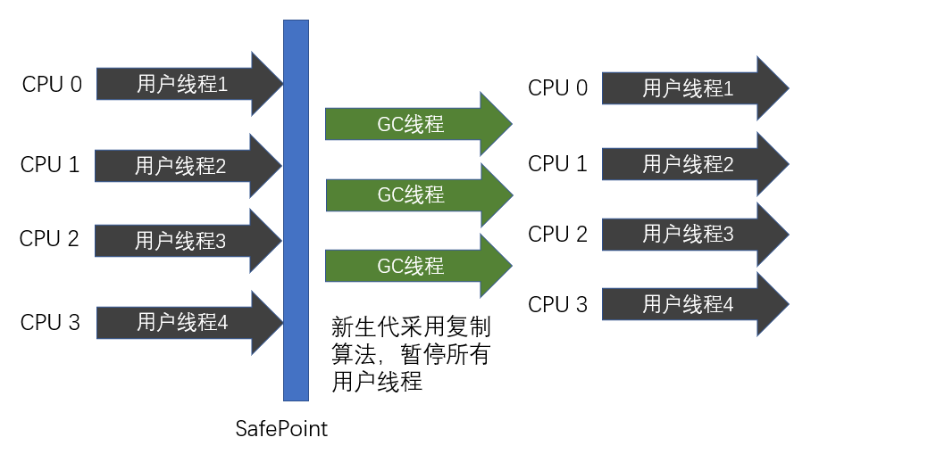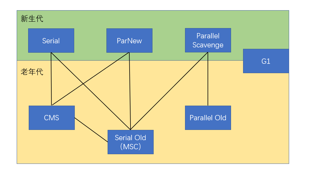 下面来看看三个新生代的收集器:Serial收集器、Serial收集器和Parallel Scavenge收集器