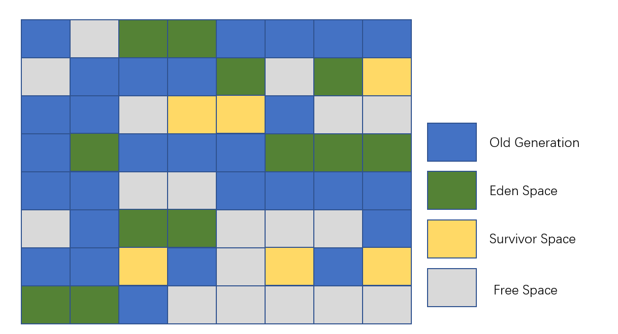 G1收集器可以在几乎不牺牲吞吐量的前提下完成低停顿的内存回收,这是由于它能够极力避免全区域的垃圾收集,之前的收集器进行收集的范围都是整个新生代或老年代,而G1将整个Java堆(包括新生代、老年代)划分为多个大小固定的独立区域(Region),并且跟踪这些区域里面的垃圾堆积程度,在后台维护一个优先列表,每次根据允许的收集时间,优先回收垃圾最多的区域(这就是Garbage First名称的由来)。区域划分、有优先级的区域回收,保证了G1收集器在有限的时间内可以获得最高的收集效率。