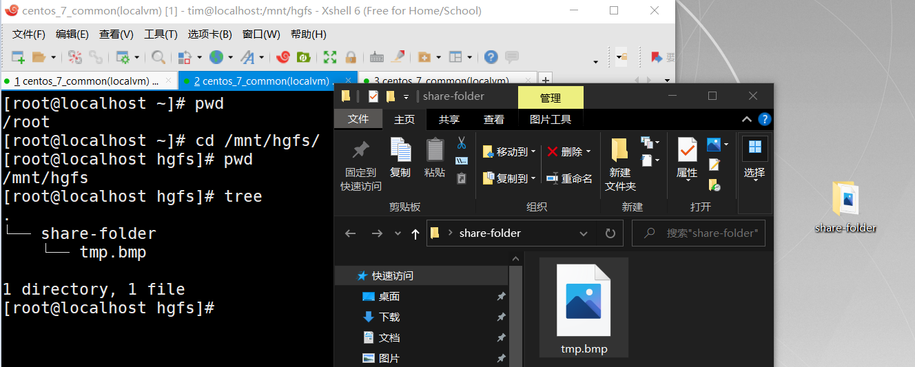 在桌面新建一个文件夹作为共享文件夹,任意名称均可,接下来在虚拟机中执行命令: