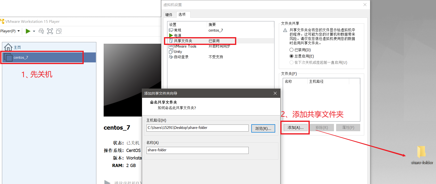 执行完毕后需要在虚拟机软件中添加共享文件夹: