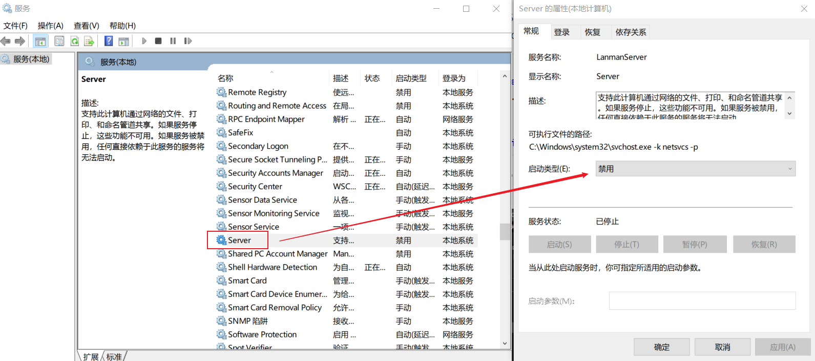 如果访问到的是本地的共享,那么需要把本地的文件共享服务给关闭(必须禁用,再重启电脑):