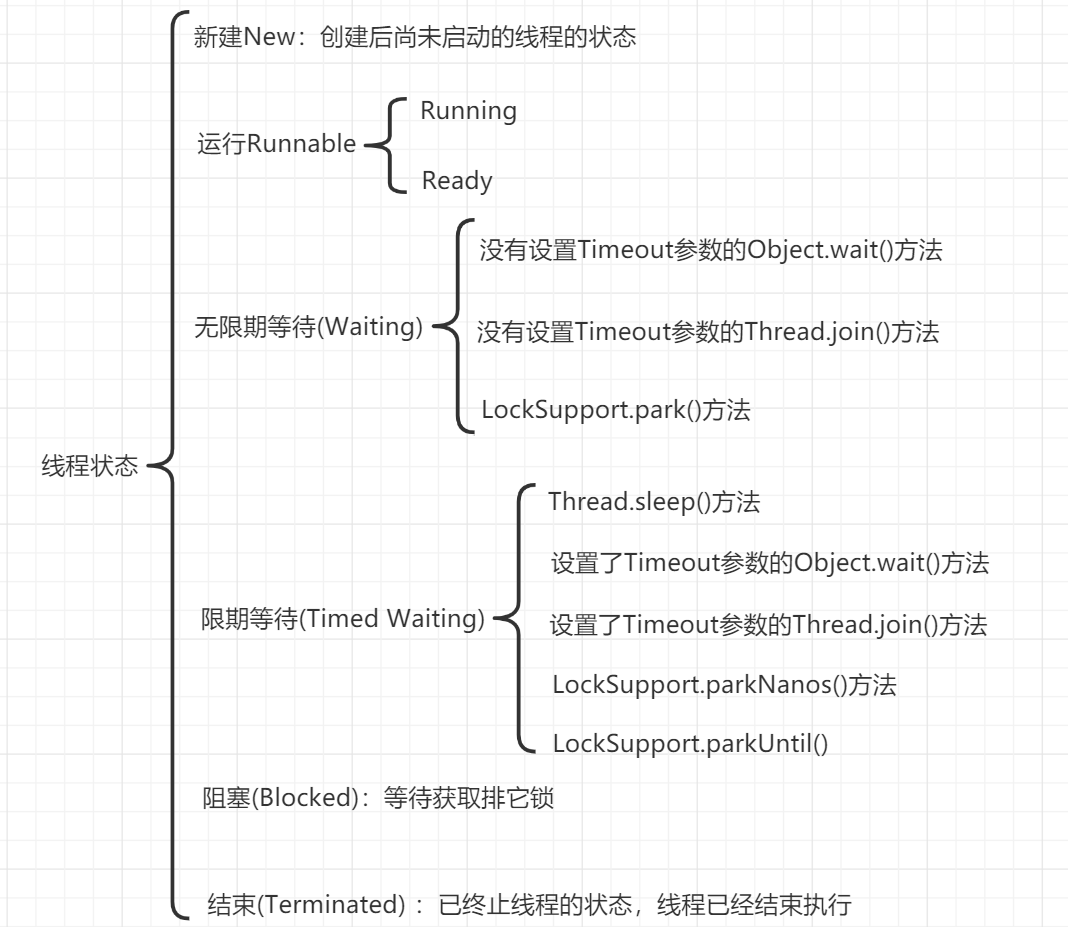 - 结束(Terminated):已终止线程的状态,线程已经结束执行