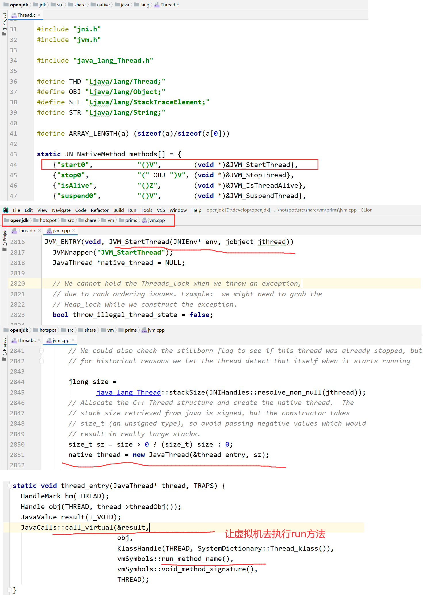start()点进去其实调用了start0(),而start0()是一个native方法,通过查看源码我们得知: