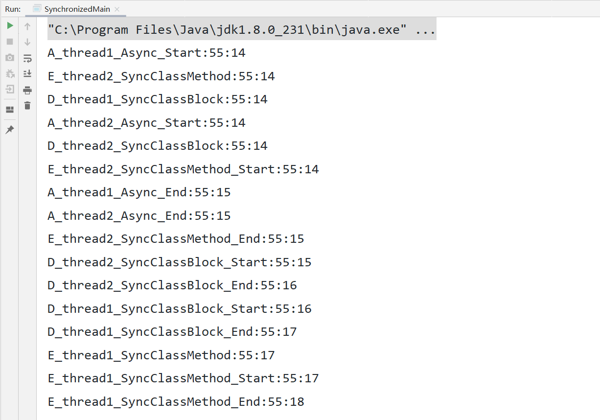 Thread E_thread1 = new Thread(new SynchronizedDemo(), "E_thread1");