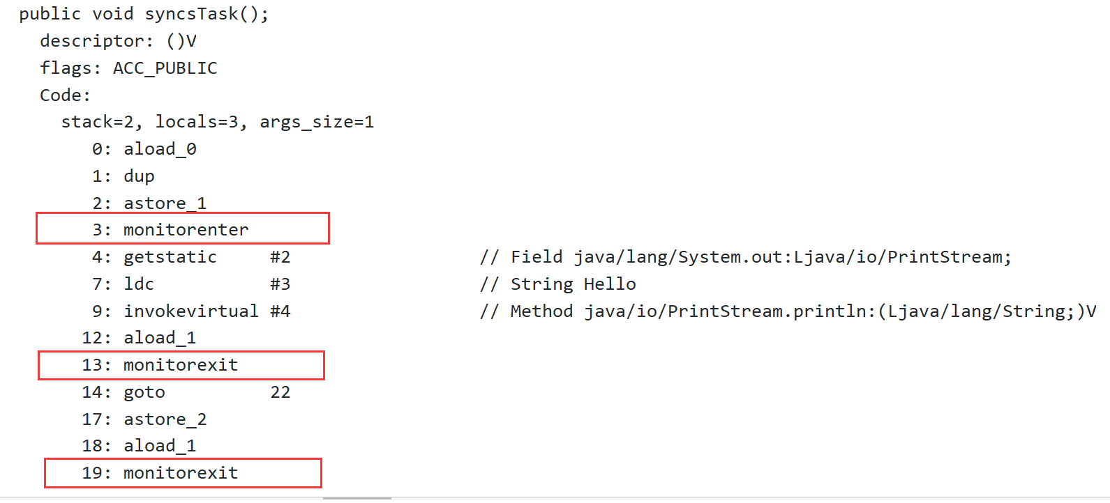 是否注意到了上述字节码中包含一个monitorenter指令以及多个monitorexit指令。这是因为Java虚拟机需要确保所获得的锁在正常执行路径,以及异常执行路径上都能够被解锁。