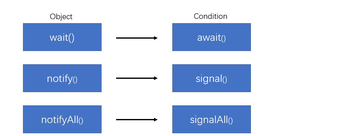 其中,Lock 替代了 synchronized 方法和语句的使用,Condition替代了 Object 监视器方法的使用。