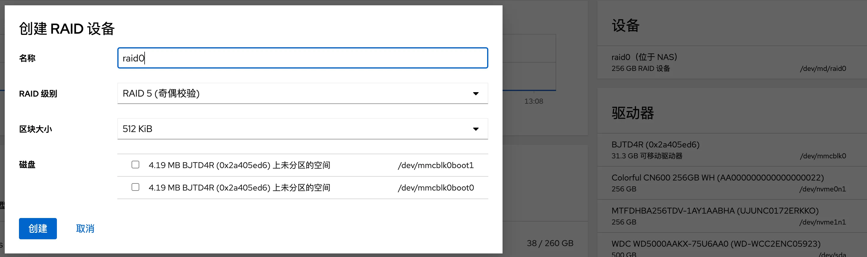 如果使用命令行来操作硬盘不熟练,但你又需要组一个RAID1或者REAID5,那么直接使用存储管理界面直接操作即可