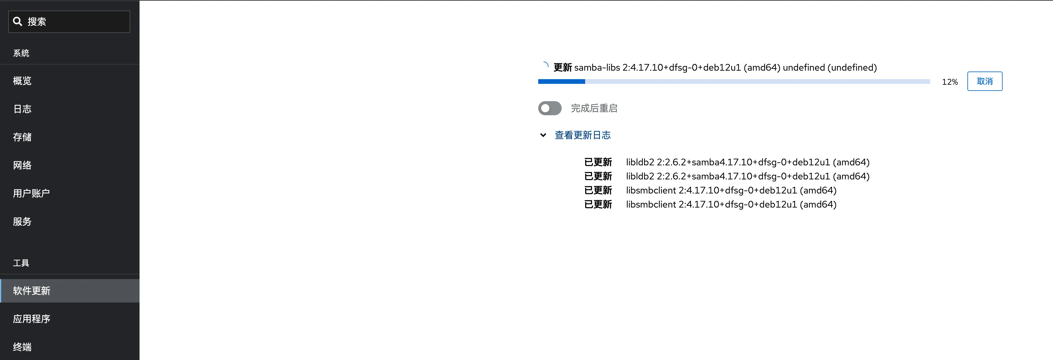 作为NAS平时肯定是需要一个Web管理页面的,这里我推荐Cockpit,Cockpit 是一个 Red Hat 赞助的开源项目,它是一个网页式用户界面,让用户可以通过浏览器来管理和监控Linux 服务器。除了一些常规的系统操作外,Cockpit 还支持 Docker、Kubernetes和KVM。 通过Cockpit Web UI可以轻松启动容器、管理存储、配置网络和检查日志。Cockpit的默认端口是 8888