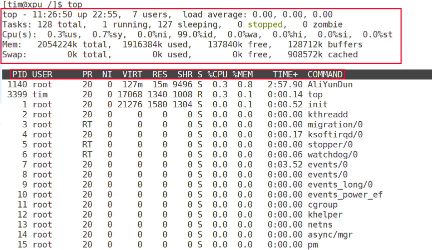 实时动态地查看系统的整体运行情况,是一个综合了多方信息监测系统性能和运行信息的实用工具。通过top命令所提供的互动式界面,用热键可以管理。