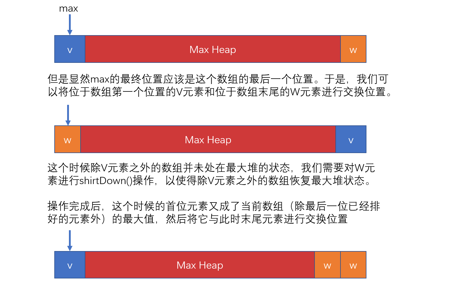 //开始向下调堆